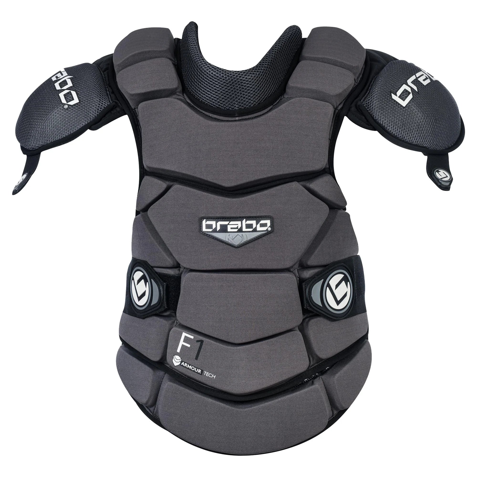 The Brabo F1 Body Protector provides optimum torso protection with Dual High-Intensity Cellular Foam, designed to safely absorb impact while maintaining freedom of movement. Featuring Armor Tech and High Impact Shoulder Cups, it ensures premium protection for shoulders and collarbone. The removable front flap adds comfort and extended coverage for taller keepers.